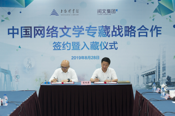 8月28日,阅文集团与上海图书馆达成网络文学专藏战略合作并举办签约暨入藏仪式。