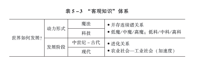 讨论中所浮现出来的这套客观知识,看起来是一个叠加了奇幻元素、混合了中学课本的简化马克思主义和马路自由经济学的知识体系:世界发展存在固定的动力(魔法驱动或者科技驱动),动力形式决定了世界的发展阶段,动力形式的进化速度决定了所处社会发展阶段的差距。魔法控制的中世纪-古代世界是农业社会,市场、法律与人权进化缓慢;科技控制的现代工业社会,市场、法律与人权进化快速。两个世界的战斗力建立在市场、法律与人权的综合水平之上。在讨论过程中,发帖人与回帖人的主要争论要点就在于:高魔世界是否足以抵挡中科世界的火力,而讨论的主要方式则是争论高魔农业世界的经济发展动力、政治动员能力和社会组织能力,有无发展到某个阶段的可能性。