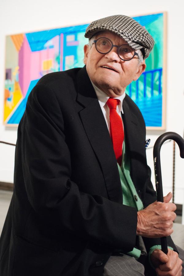 2017年2月,大卫·霍克尼在泰特不列颠美术馆举行回顾展,那年他80岁,图为2017年11月霍克尼在纽约大都会艺术博物馆