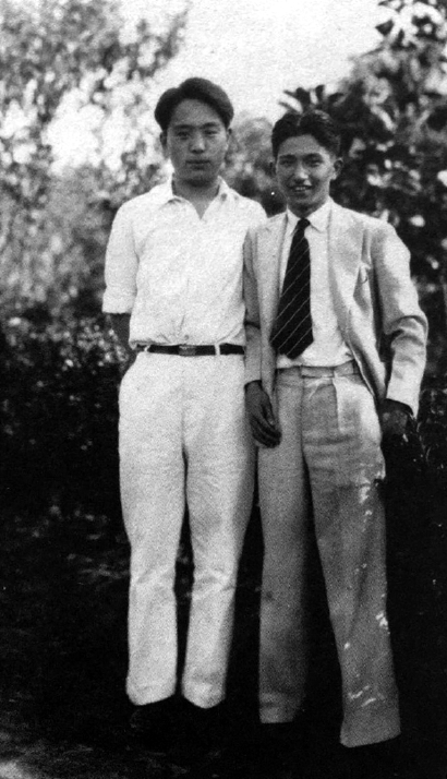 1931年6月,靳以(左)与学友在江湾复旦