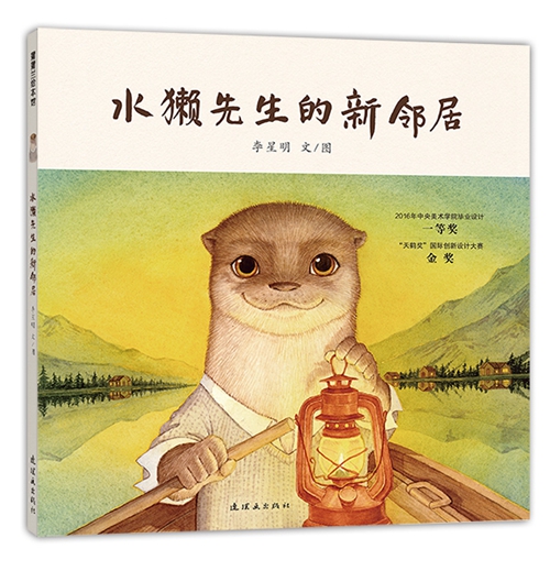 《水獭先生的新邻居》加上大腰封,水獭先生和邻居们在一起,真正封面,是孤独的水獭先生,这个设计完全符合绘本要传达的内涵。