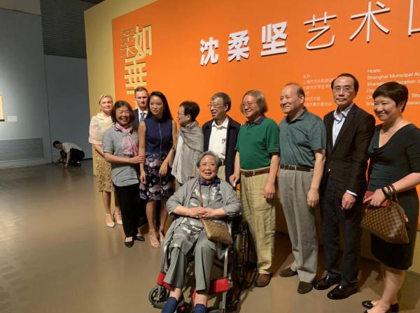 展览开幕式合影,中为沈柔坚妻子王慕兰