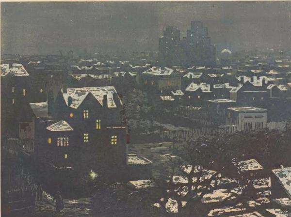 在展览中,《上海展览馆》《浦江夕照》和《雪后》勾起了很多人的上海记忆,作于1957年的《雪后》画家以宁静抒情的雪夜表现美好的意愿。寒冷之夜中却透着人性的温暖,如同听到了画家的独白和夜的歌曲。展览还将多件版画和绘画作品并列展陈,从其中也可以看出多个画种的绘画语言是如何互相影响和借鉴。