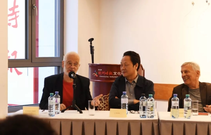 此外,奥地利还涌现出许多专注于研究、出版和传播中国文化文学的优秀汉学家及出版社,他们以切实的创作和出版推动中欧文学交流。比如卡明斯基教授对于中国的研究持久而深入,他出版介绍中国的著作达到七十余种,拉近了中奥两国人民的距离,成为中奥人民交流的文化使者。有一批出版社长期关注和出版中国文化文学图书,比如洛克出版社、八棵芭出版社以及维也纳索纳塔文化及教育交流促进会,他们编辑出版的一系列关于中国当代文学的丛书,极大地推动了中国文学在奥地利的传播和接受,有力地促进了中奥文学的深入交流。吴义勤在致辞中向这些作家、翻译家及出版社致敬。