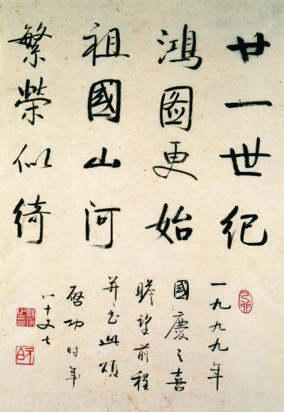 历史的脚步走到1949年,国制鼎革,天地重开,新中国巍然屹立于世界东方,具有古老传统的书法开始迈进新的历程。新中国书法是古老中国书法的发展,作为中华民族独特的艺术,它应该也必须承继历史传统,又因前所未有的社会文化环境和条件发生着新变,形成自身的特点和发展脉络。新中国、新社会、新制度、新思想、新观念、新科技、新传媒,这是一个崭新的时代。新中国70年,为人类历史的进程和结构创造了全新的图像,树立了举世瞩目的伟大里程碑。古老的书法走进新中国,既经历了以往时代未曾经历的考验,又欣逢以往时代未曾遇到的发展机遇。新中国70年的书法,在考验中生存和发展,一步一个脚印,与时俱进,以其特有的韧性和顽强的生命力延展着中华民族的文脉,彰显着中国文化的身份,体现着中国文化的自信,表现着特有的审美意趣。国家兴盛,书法复兴。国运蒸蒸书运昌,书法的命运与国家的命运紧密相连。新中国书法70年的发展历程,从一个侧面反映了中华民族伟大复兴的历史进程。正是在山重水复柳暗花明的行程中,新中国书法留下了前行的脚印、探索的痕迹和发展的脉络。