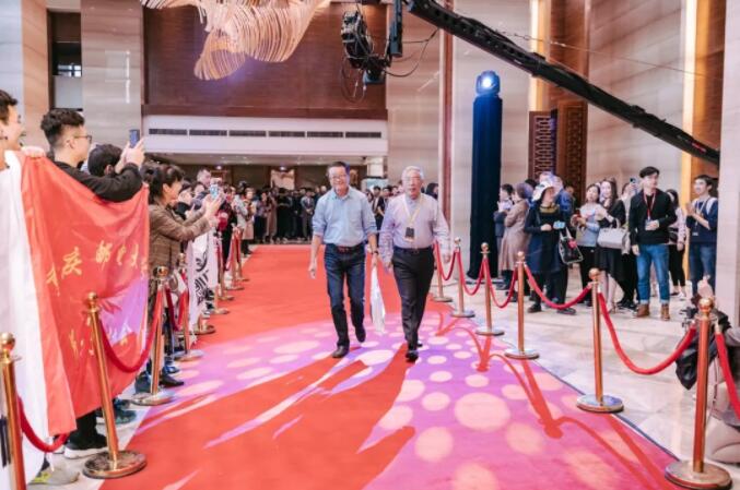 2018年刘慈欣、王晋康在重庆雾都宾馆出席延续了九届的“星云之礼”——科幻明星红毯入场仪式
