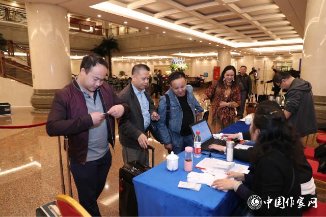 “艾布!艾布!”——凤凰彩票创联部民族处处长陈涛热情招呼着新疆代表团一位东乡族作家。新疆作协主席阿拉提·阿斯木同4位新疆代表在下午4点左右到达,天色已暗,让习惯了晚上10点才天黑的新疆作家们强烈地感觉到,他们已经来到北京,接下来几天要与各民族作家共同探讨文学创作。
