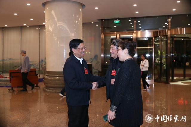 贵州代表团的王杰和西藏代表团的智化加措一同走进来,两位年轻作家分享着彼此的来京旅程,给现场带来一份青春活力。