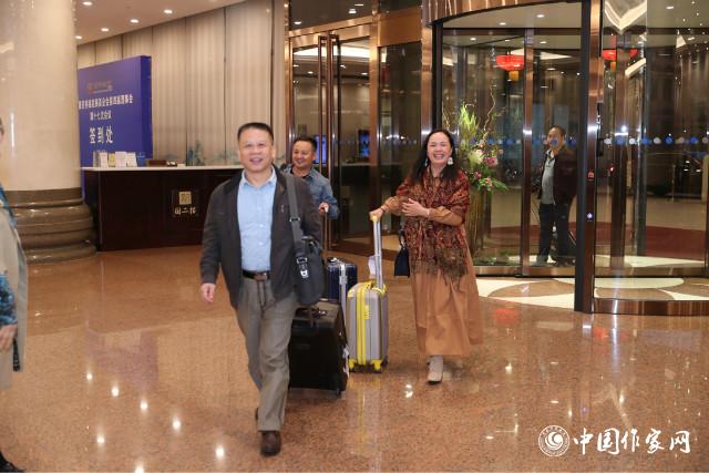 广西代表团一行10人,踏着夜色浩荡而来,“好凉快啊!”来到正降温的北京,作家们发出感叹。此刻的北京与广西相差近10度,但他们并未受到冷空气影响,带着从广西而来的热情与热度相聚北京。
