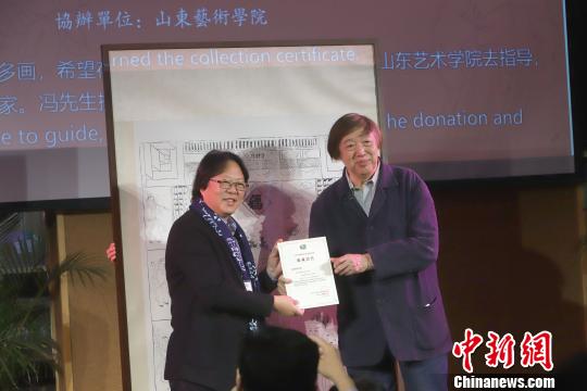 冯骥才向王力克颁发捐赠证书。 张道正 摄