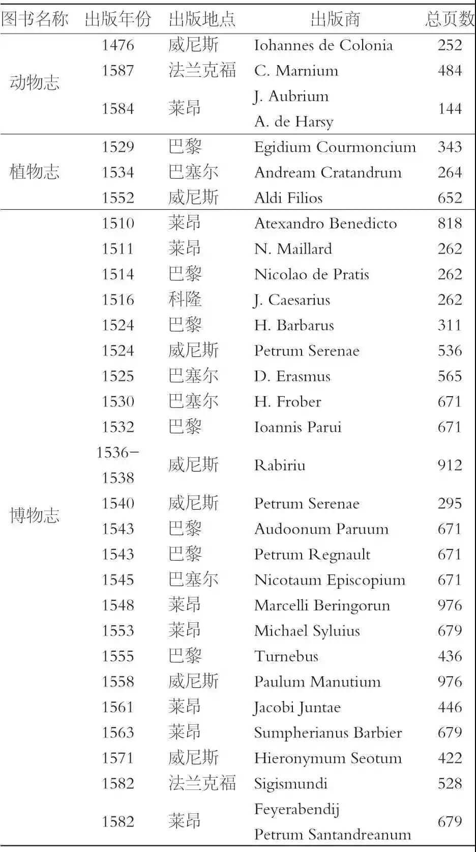阿尔德罗万迪的《鸟类学》也是百科全书式的书籍。在该书中,作者致力于描写和图解说明自然界的多样性。该书成了当时医生、药剂师、植物学家不可或缺的手册。其出版的相关数据见表3。