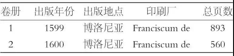 表3 阿尔德罗万迪两卷本《鸟类学》书目出版数据