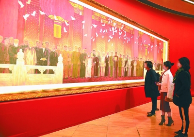 “伟大历程 壮丽画卷——庆祝中华人民共和国成立70周年美术作品展”自从9月26日在中国美术馆开幕以来,观众的观展热情持续高涨。昨晚6时,本该闭馆的中国美术馆开启了夜间开放时段,迎来了一批特别的嘉宾——来自各国驻华使馆的大使、公使、参赞和文化官员。