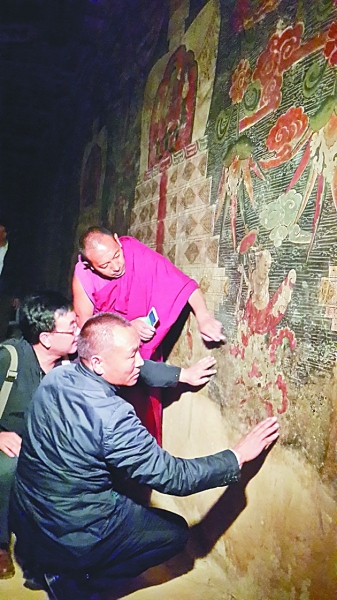 哲蚌寺僧人在与专家一起商讨寺内壁画的修复方案。本报记者李韵摄/光明图片