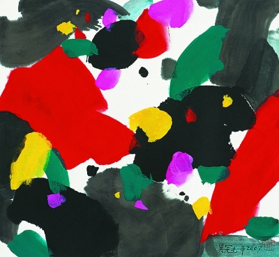 “望尽天涯路。”吴先生一方面对自己的抉择,对自己当时遭遇的三十年风雨终不悔;另一方面又噎心远望,呼唤三十年功过的评说。在文章的结尾处,他真情写道:“朝朝暮暮,立足于自己的土地上,拥抱着母亲,时刻感受到她的体温与脉搏。”正是在“望尽天涯路”之后,吴先生更加义无反顾地投身于震古烁今的革命性的绘画与思考中,为中国的书画艺术的发展作出巨大的贡献。他敢说敢为,崇尚真理,旗帜鲜明地提出“风筝不断线”“绘画形式美”“笔墨等于零”的独到观点,锋芒横指艺术界的积弊沉疴,为新时期中国美术吹进了一股清新之风。他率真自由,立志破除一切陈见,明辨“形”与“象”诸般纠结,放骸心胸地咏唱,让满眼的烟云化入清新的诗境。他以朴真写自然、以童心开诗心,以持续的清新意志开拓东方的诗性,以天地微茫的苦味,化育满目的青葱与生机。他才思横溢,放笔直书,望断高城,吟咏无尽,在可见与不可见之间架澄明之桥,在文学与绘画之间架诗性之桥,在东方与西方之间架心灵之桥,在传统与当代之间架根源之桥。吴先生以始终的拓荒者的形象,无愧为东西绘画之间造桥的第一人。