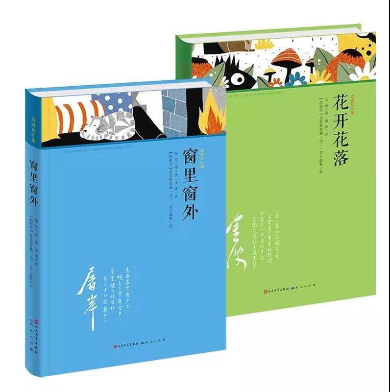 收录入金波与屠岸二位先生创作、翻译及互评合集《诗流双汇集》,书中101首诗皆附有如图手稿,西班牙插画家克里斯蒂娜配插画。