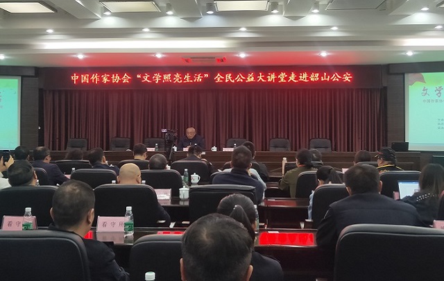 22日下午,与会作家分为三组开展活动。第一组李文朝、骠骑等20余位作家跟随凤凰彩票“文学照亮生活”全民公益大讲堂走进湖南韶山公安局。原海军政治部文艺创作室主任、编剧朱秀海为学员以及韶山市公安局文学爱好者带来题为“文学的力量和作家的使命”的讲座。朱秀海从自身的从军经历和创作经历出发,谈到部队作家如何通过创作为人民服务,他认为军队作家一要完成部队交代的任务;二是用创作为中华民族的伟大复兴服务。在他看来,爱国主义和英雄主义是军事文学中永恒的主题,也是人性的最佳体现。最后朱秀海还谈到《乔家大院》的创作过程,希望通过乔家大院这一题材告诉观众,在农耕社会之外,中国人早就发现了另外一条生存下去的道路,这就是走商品经济的道路。