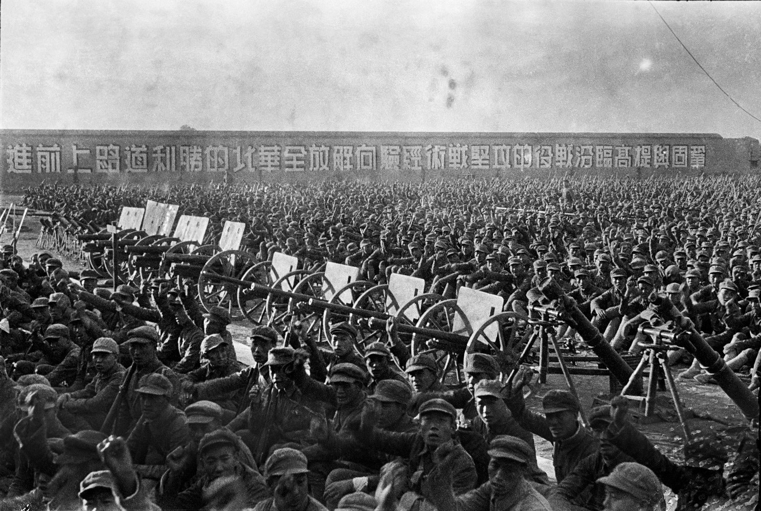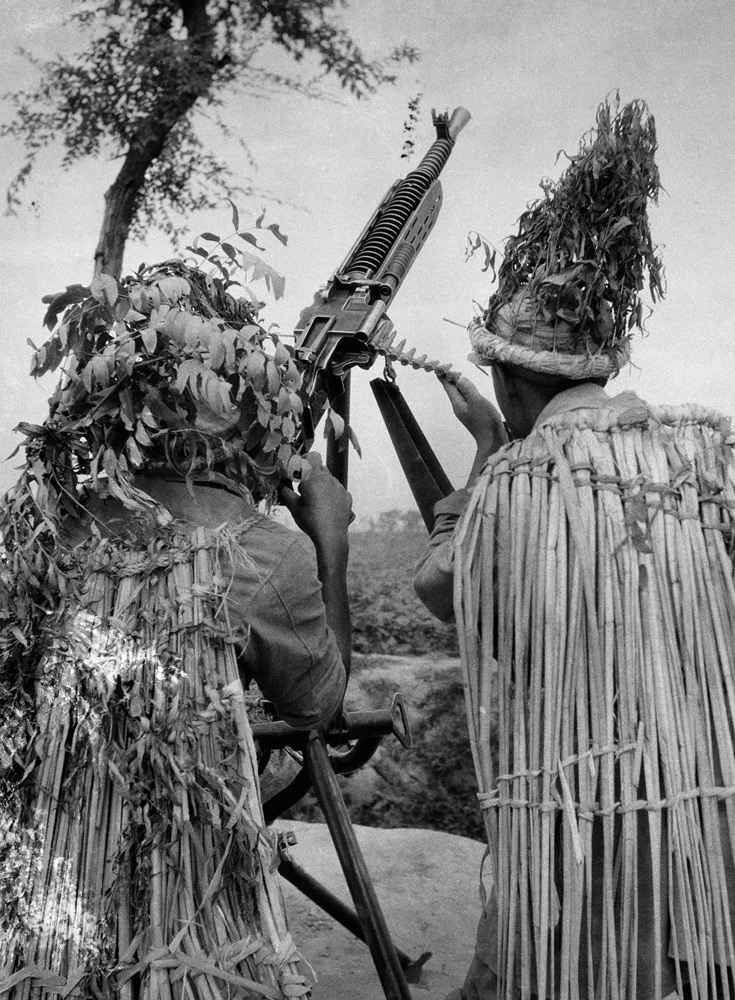 定陶战役大杨湖战斗中,我军防空哨兵。1946年9月,山东