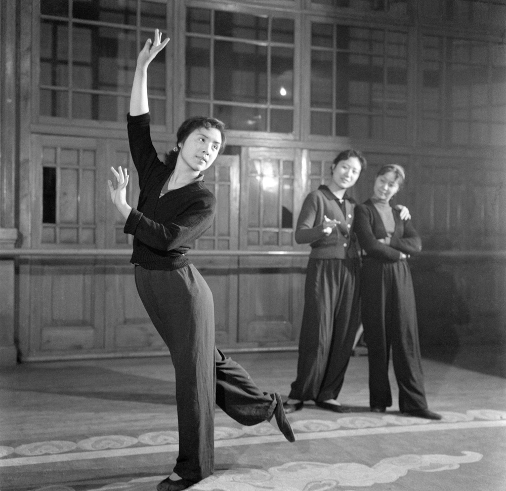 中央歌剧舞剧院演员赵青在练功。1962,北京