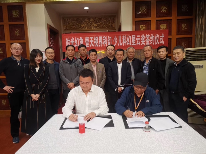 为了促进中国少儿科幻文学和产业的发展,10月25日晚,时光幻象公司与壹天视界科幻公司签署了联合兴办“少儿科幻星云奖”的协议。10月26日晚,召开了“首届少儿科幻星云奖筹备会”,成立了首届少儿科幻星云奖组委会。