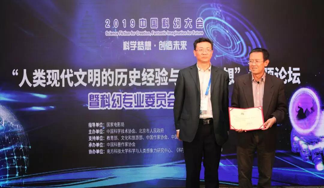 周忠和院士向科幻专业委员会副主任委员颁发证书