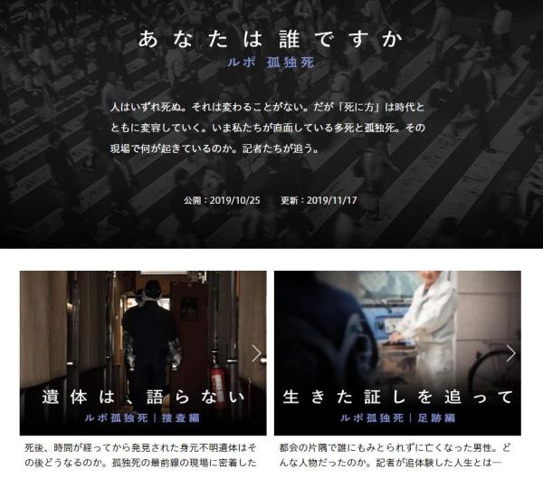 日本媒体常有对“孤独死”的报道。图为朝日新闻的专题报道页面