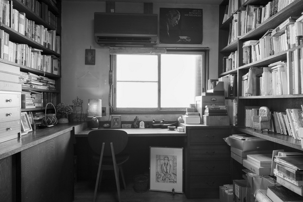 茨木则子阅读、写作的书房。丈夫在世时,两人共同使用这间十平米左右的书房。