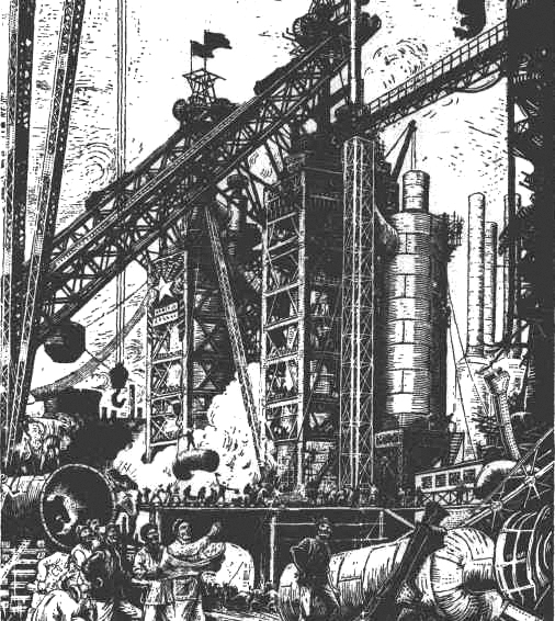 鞍山炼铁炉之修复 古元 作 发表于《人民文学》1949年第1期