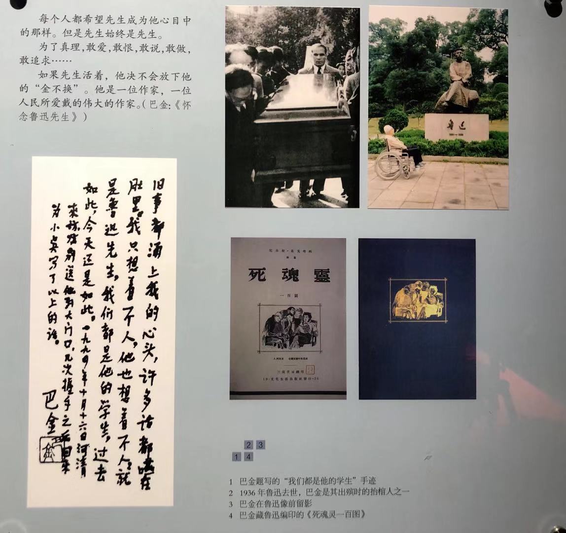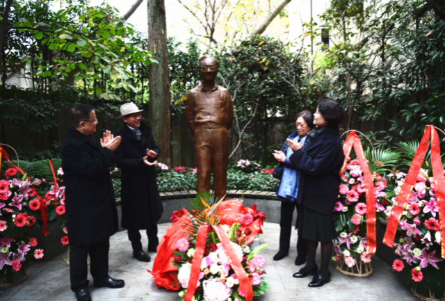从展览所在的徐汇艺术馆出来,不远处武康路113号的巴金故居前院,一座巴金先生的铜像同期揭幕——高2.23米,面向主楼,含笑背手,踱步沉思,如同老人家生前在院子里散步,思考着如何“讲真话把心交给读者”。