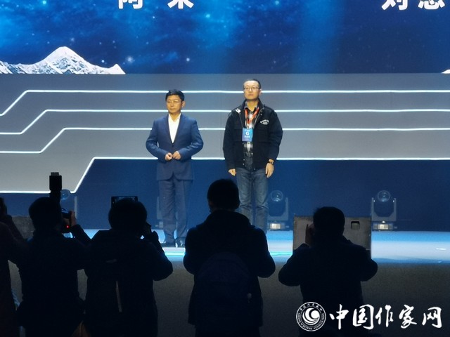 阿来(左)荣获第30届科幻银河奖“特别贡献奖”,刘慈欣(右)入选“银河科幻名人堂”。
