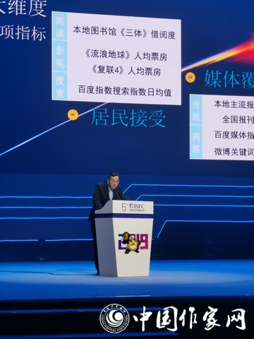 本次科幻大会的开幕式上,深圳科学与幻想成长基金首席研究员三丰发布了《2019中国城市科幻指数报告》。报告选取产业发展、政策支持、媒体覆盖和居民接受4个维度的16项指标,运用大数据综合对比,评估了国内主要城市的科幻指数,得出“中国十大科幻城市”榜单。成都市在产业发展和政策支持方面表现突出,总得分位列第一,成为“中国最科幻城市”。这座城市拥有科幻世界、时光幻象、八光分、赛凡科幻、海星社等科幻产业机构,诞生了诸如银河奖、华语科幻星云奖、未来科幻大师奖和冷湖奖等有影响的科幻奖项,悠久的科幻的历史、热烈的科幻的氛围和层出不穷的本土科幻作家,使成都成为了科幻迷心中的“科幻之都”,它还在2018年正式提出申办2023年第81届世界科幻大会。