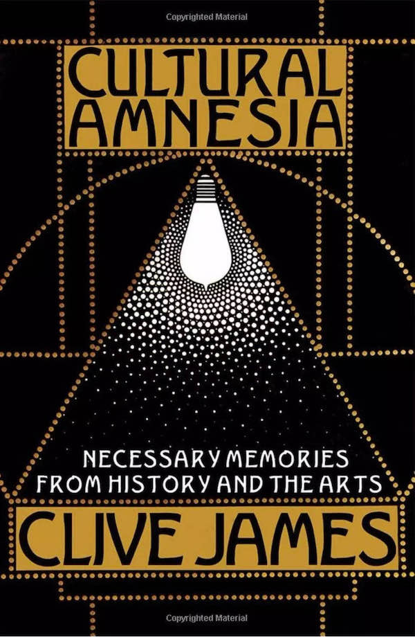 克莱夫·詹姆斯(Clive James,1939-2019)的《文化失忆》(Cultural Amnesia)于2007年出版,最初的副标题是“有关历史与文化的必要记忆”,这是他的第十五本评论集,他声称为了这项计划,花了四十年的时间来阅读和思考,并耗时近五年写作完成。《文化失忆》2012年修订重版,增加了一些内容,副标题也改为“写在时代边缘的笔记”。