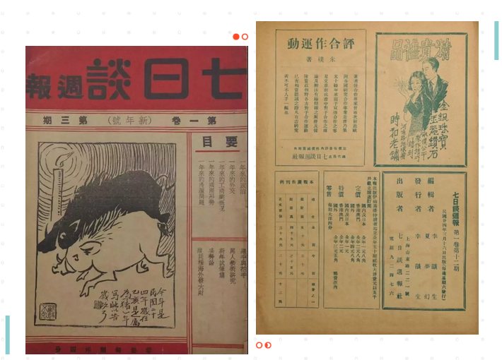《七日谈周报》第1卷第3期封面(左)和《七日谈周刊》第1卷第12期版权页(右)