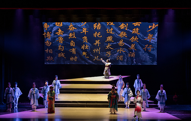 《少年行》今年9月首演,讲述了古代和现代两个少年李白的成长历程。现代少年李白可爱率真,痴迷电脑游戏,对传统文化中的诗歌毫无兴趣。古代少年李白也对写诗毫无兴趣,且骄横任性、沉迷剑术,一心要浪迹天涯。与他们相伴相随的是一群有趣又有爱的少年,比如憨态可掬的胡瓜、恬静可爱的月圆妹妹等。