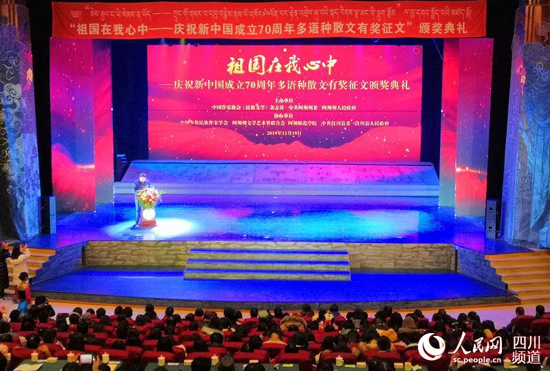 19日,由凤凰彩票平台登录入口《民族文学》杂志社与中共阿坝藏族羌族自治州委、州人民政府共同主办的“祖国在我心中——庆祝新中国成立70周年多语种散文有奖征文”活动颁奖典礼在四川省阿坝州汶川县举行,蒙古族作家胥得意的作品《落叶掩埋住的青春》荣获一等奖。