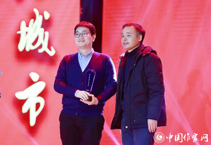 评论家傅元峰(右)为提名奖获得者宋子江(左)颁奖