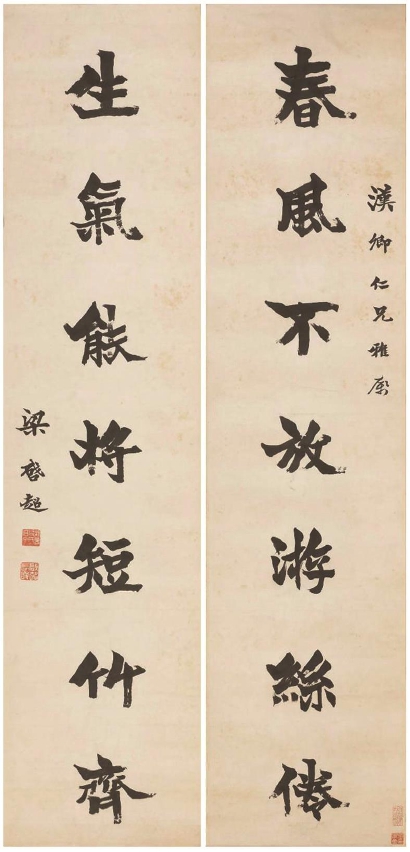 梁启超书赠张学良书法七言联
