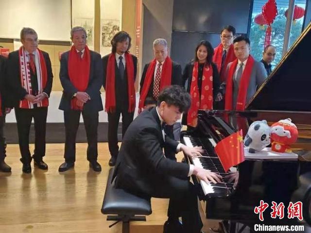 新年倒计时前,在国际比赛中多次获奖的中国钢琴少年陈启天进行了现场演奏。活动于当地时间24日下午5:00准时开始,此时正是北京时间大年初一零点,为迎接新年的到来,中国著名艺术家、中国国家画院美术馆馆长何加林在现场击缶倒计时,为系列活动拉开了序幕。