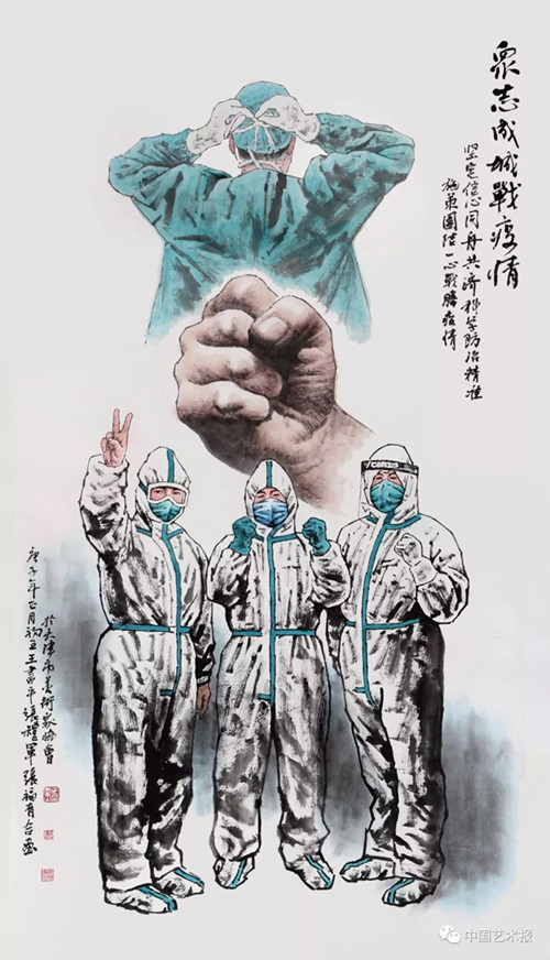 1月25日是大年初一,举国上下抗击新型冠状肺炎的严峻形势牵动着每个百姓的心。广西北部湾书画院院长陈中华拿起画笔创作《抗击新冠肺炎》,以表达对战斗在一线的医务工作者的崇敬之心。