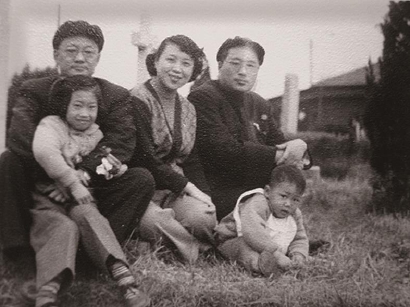 1952年春,靳以(右一)与巴金一家合影