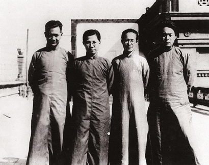 1933年摄于北平,左起:萧乾、曹禺、沈从文、靳以