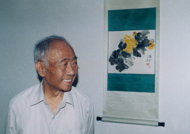 汪曾祺在虎坊桥新居自己的画前