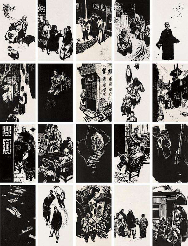 高荣生的《四世同堂》是根据中国现代长篇小说的经典名著老舍的《四世同堂》创作而成。小说以祁家四世同堂的生活为主线,描绘了卢沟桥事变抗日战争爆发后,沦陷下的北平,小羊圈胡同里各个阶层人们的荣辱浮沉,生死存亡。老舍以其炉火纯青的小说技艺刻划了祁老人、瑞宣等一系列栩栩如生的艺术形象,展现了风味浓郁的北平生活画卷,至今传读不衰,历久弥新。版画家高荣生的这套《四世同堂》插图,创作于1982-1984年间,是这部名著的众多插图中最为著名的一套。它与小说的情节发展结合紧密,在深沉的史诗气质之外,突出了老舍作品特有的那种幽默与戏谑。