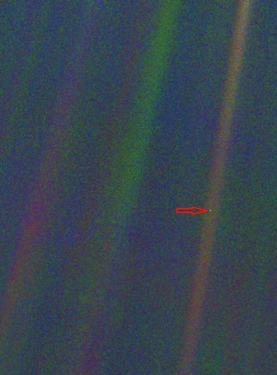 旅行者1号拍摄的太阳系中的暗淡蓝点儿——地球。