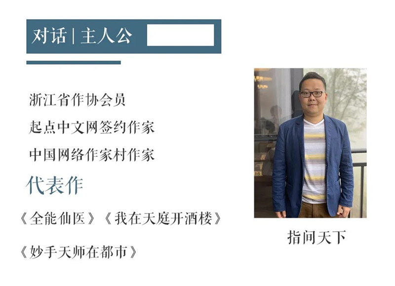 指间天下:初心就是喜欢讲故事,喜欢写小说吧。从小就喜欢看武侠小说,从小就梦想着长大要当一名作家。长大以后接触了网络小说便被这个丰富多彩的世界给深深地吸引住了,就有了当一名网络作家的想法。