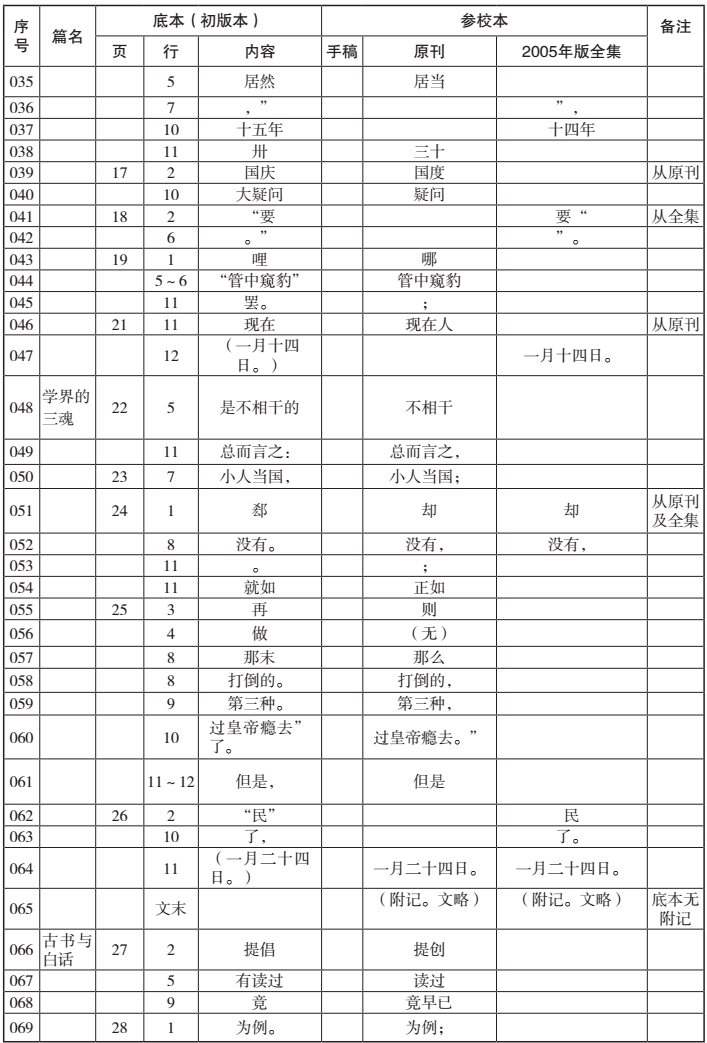 原刊上的“我便在《学界的三魂》后面加了一些附记,送给《语丝》付印了。送出后一想,”共约30字,在初版本和全集中都被刊落,造成前后语义很不连贯,“不禁好笑”出现得十分突兀。初版本在排印过程中,存在几处脱文的情况,这是最为严重的一例,因为直到全集都没有补上。