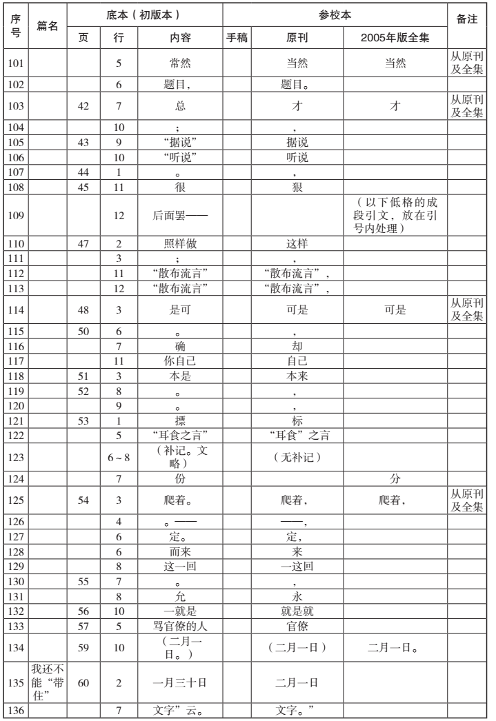附录:《华盖集续编》汇校表