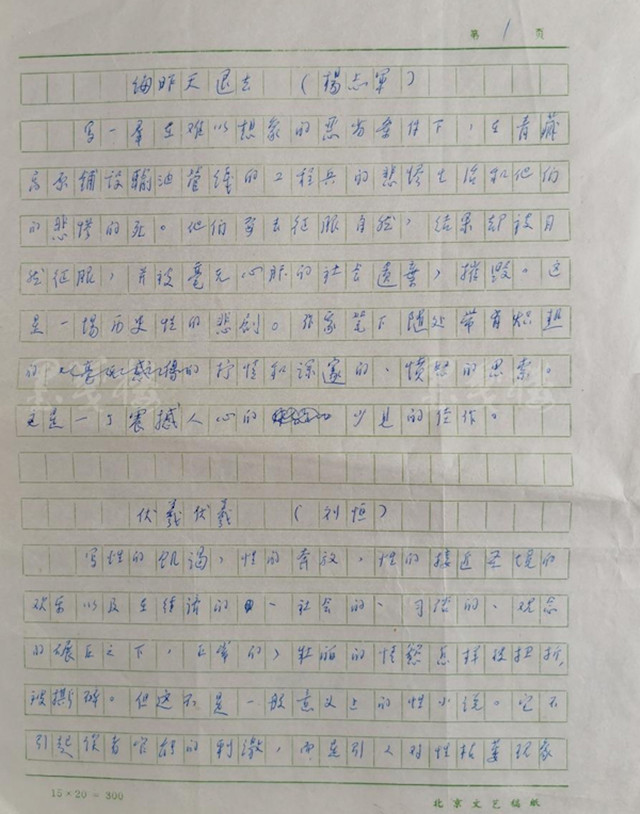 评语中的《海昨天退去》《伏羲伏羲》《少将》三个小标题,正是当年还是青年作家的杨志军、刘恒与乔瑜参加此次文学新人初选阶段的作品。根据上文提到的“初选名单”可知,除以上三种外,入围初选名单的还有残雪的《天堂的对话》、谢友鄞的《滋味》、格非的《青黄》等七部作品。包括汪曾祺、柯灵、茹志娟、袁鹰等在内的评委所要做的,就是从这七部作品中选出自己钟意的三部。显而易见,汪曾祺最终投了杨志军、刘恒和乔瑜的票,这一宗资料即是明证。