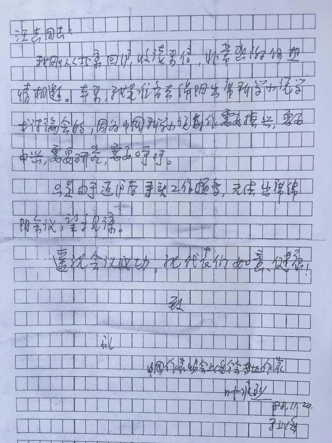 1988年11月20日叶永烈给汪志的信