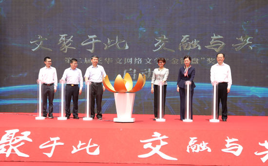 徐宁副部长与汪兴国、盛蕾、李贞强、张思明、匡晖共同上台启动第二届泛华文网络文学“金键盘”奖。本届评奖作品的范围为在全国各大文学网站发表,并于2018年1月至2019年12月期间完本或翻译成外文且在国外网站连载或出版的华文网络文学作品(含繁体文字作品),以及在此期间实体出版和影视、游戏、动漫改编的华文网络文学作品。具体评奖公告将在江苏作家网发布。